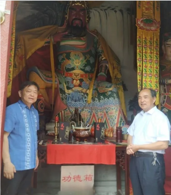 胡铁栓先生和马小平先生在关公像前合影!